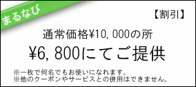 | 【割引】 通常\10,000の所\6,800にてご提供 | 携帯でクーポンをご利用になれます。 |